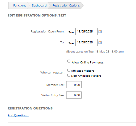 If you need online registrations for Functions, please contact DotGolf so we can enable this for your club.