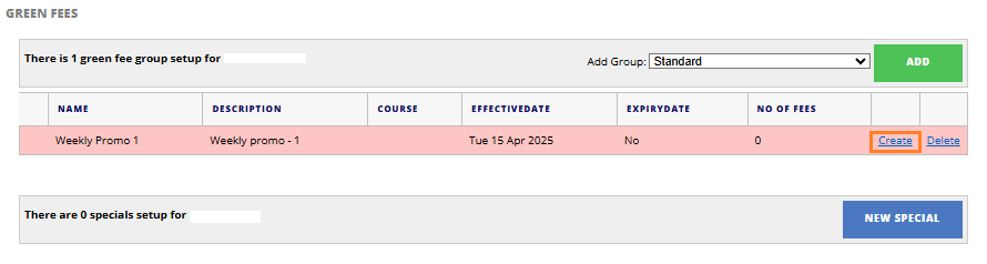 3. Set a name for the Green Fee, for example: Weekly Promotion