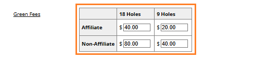 7.  Based on the answers above, you will then be able to enter the amount per green fee.