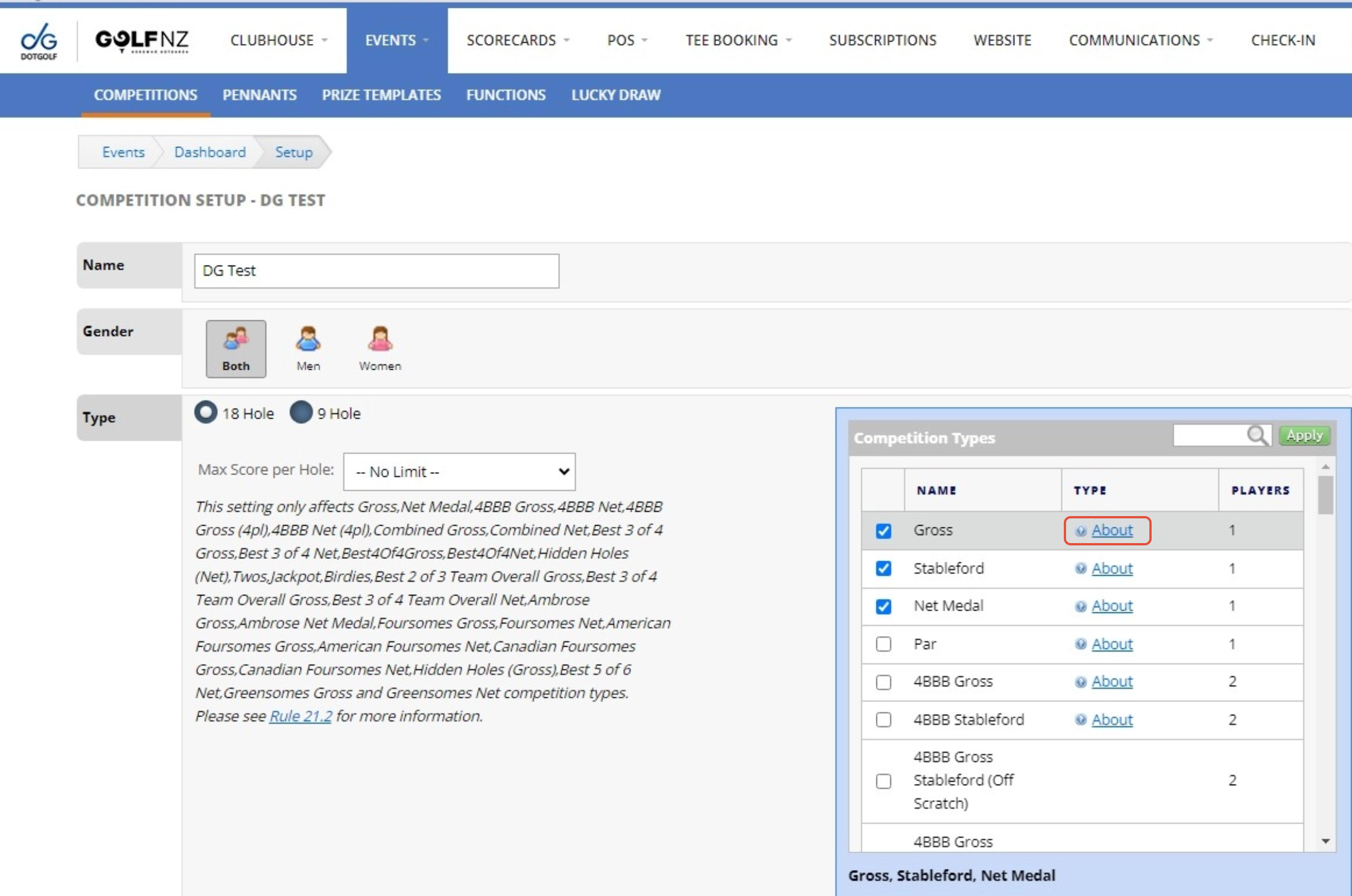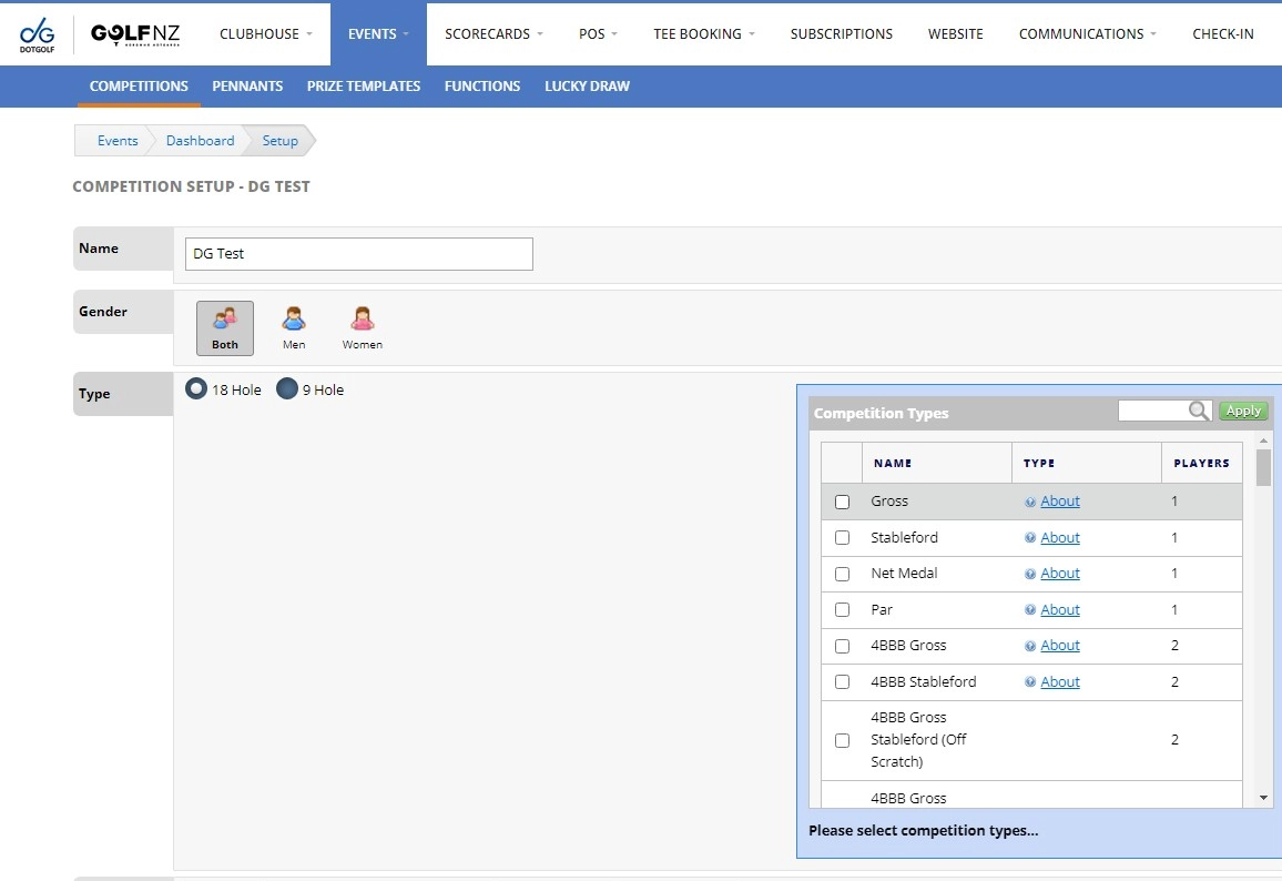 You can add or remove competitions types at any time if required, once you have changed the competition type/s and saved the changes, the Competition Results will automatically be recalculated to match the competition type that you have amended the competition to.
