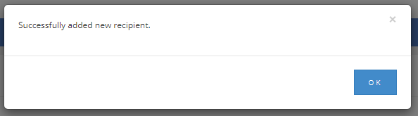 3. You will then get a confirmation message to say the recipient has been added to your Mailing List.