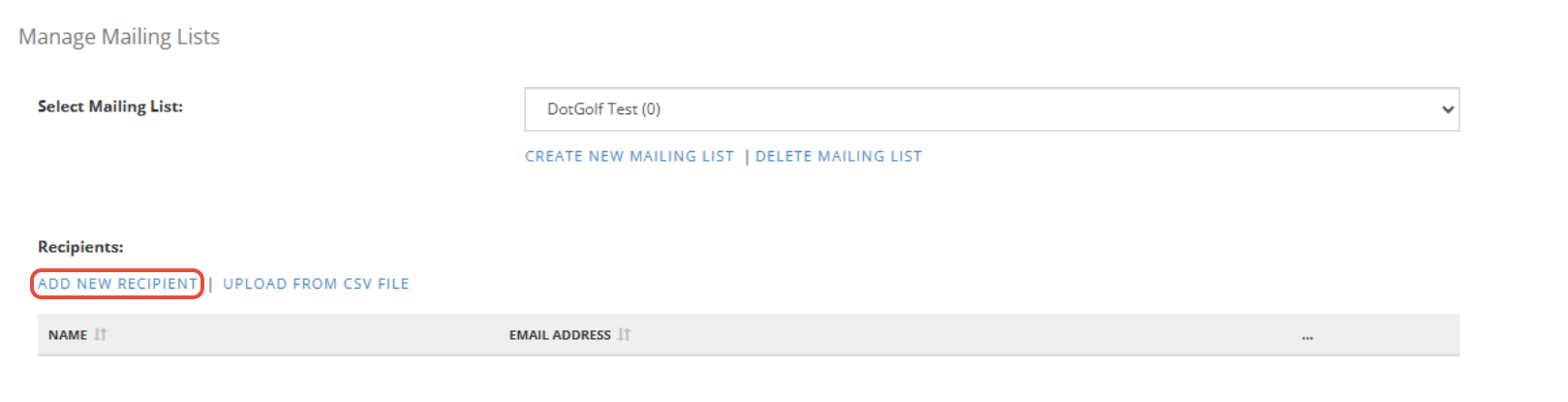 1. Select a Mailing List from the dropdown. Click Add New Recipient.