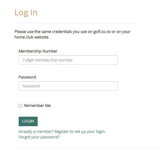 3. If you are not already logged into the club website, you will be prompted to enter your Membership Number and Password.